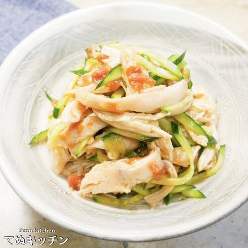 レンジで簡単!このレシピだと鶏胸肉が驚くほどしっとり仕上がります!『鶏胸肉の梅きゅう和え』の作り方
