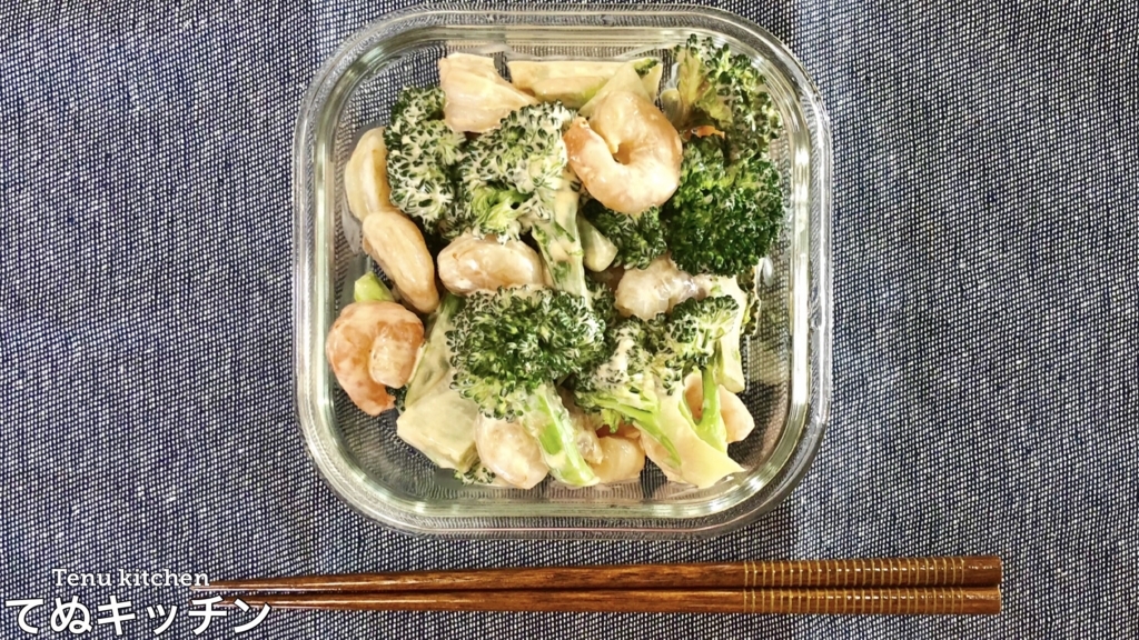 6)3)のブロッコリーと5)の海老と☆印の調味料を混ぜ合わせたら完成です。