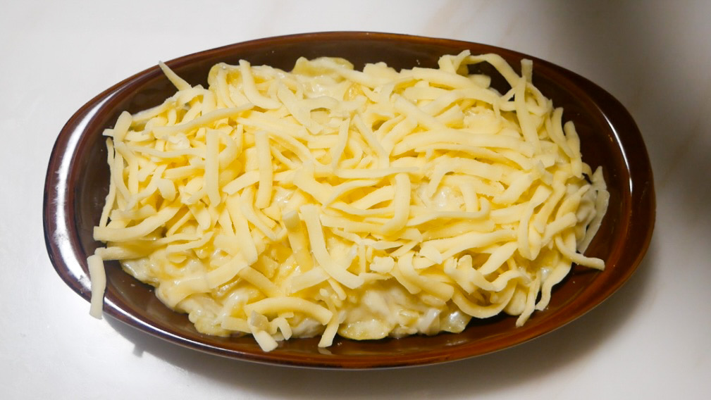 6)トースター可能な器に5)を入れてピザ用チーズをのせ、トースターで8~10分焼いたら完成です。