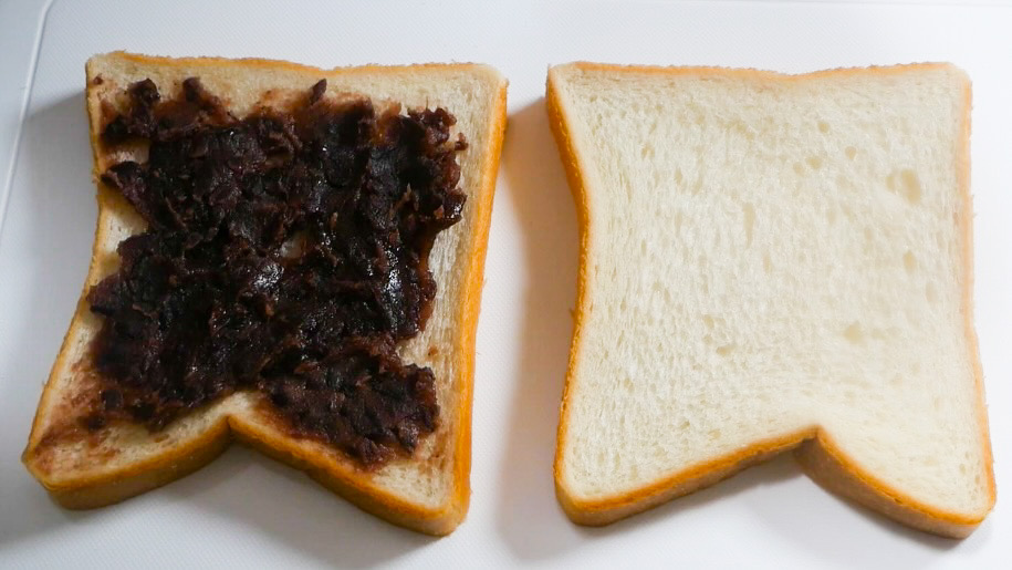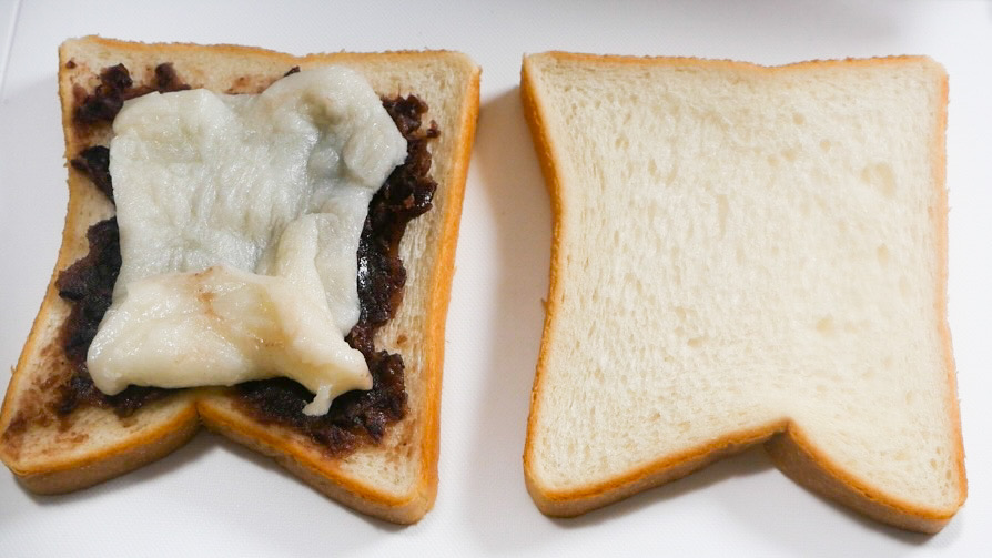 1)食パンにあんこを塗ります。